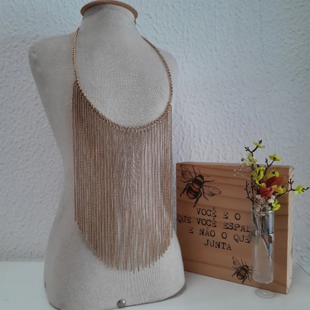 *ACESSORIZE-SE* COLAR FRANJADO CORRENTES STATEMENT DOURADO Medidas: Compr aberto 50cm + corrente extensora 10cm Material: correntes de metal Conservação: PRODUTO USADO perfeito estado (10/03) bijoux bijuteria acessórios folheado semijoia joia anel brinco colar gargantilha corrente pulseira
