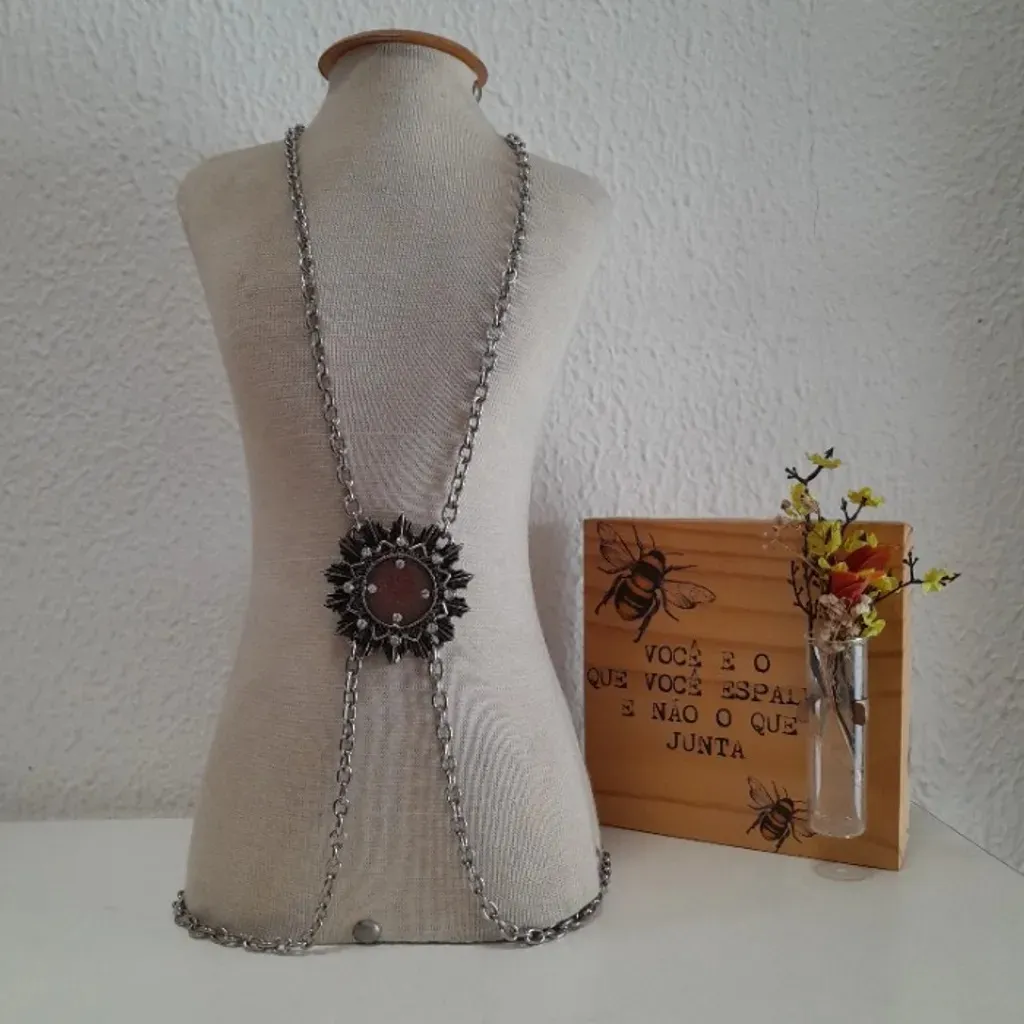 corrente bodychain, com uma corrente para o pescoço e outra para prender na cintura, possui pingente central com strass metal prateado medidas: colar 100cm de corrente cintura até 100cm (10/03) bijoux bijuteria acessórios folheado semijoia joia anel brinco colar gargantilha corrente pulseira cinto fashion