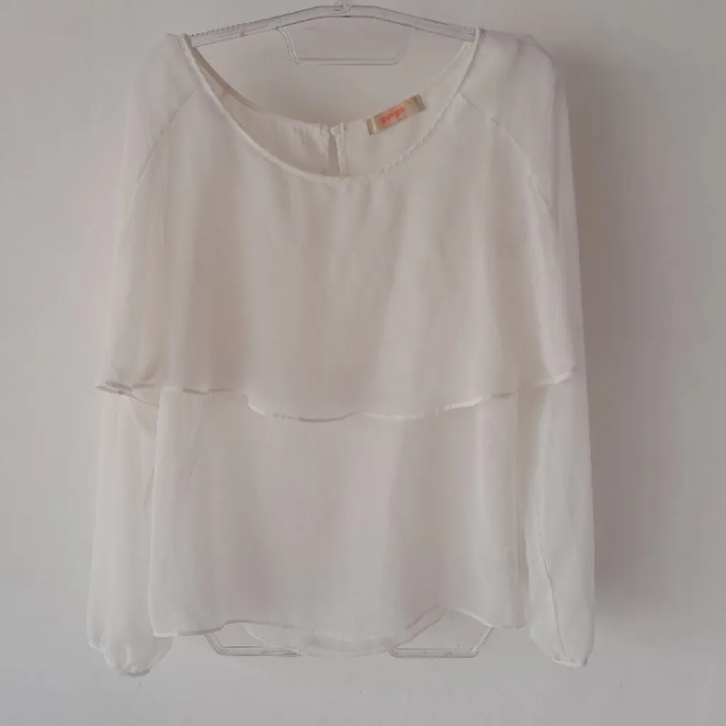 Lez a Lez Blusa manga longa sobreposição off white Tam. P Crepe poliéster Compr. 60cm Costas 38cm Busto 90cm Manga 61cm Cód. VP-0.016