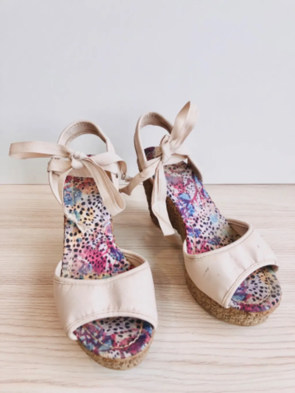 Sandália estilo Anabella, tipo tamanco, perfeito estado, floral, salto 10 cm.