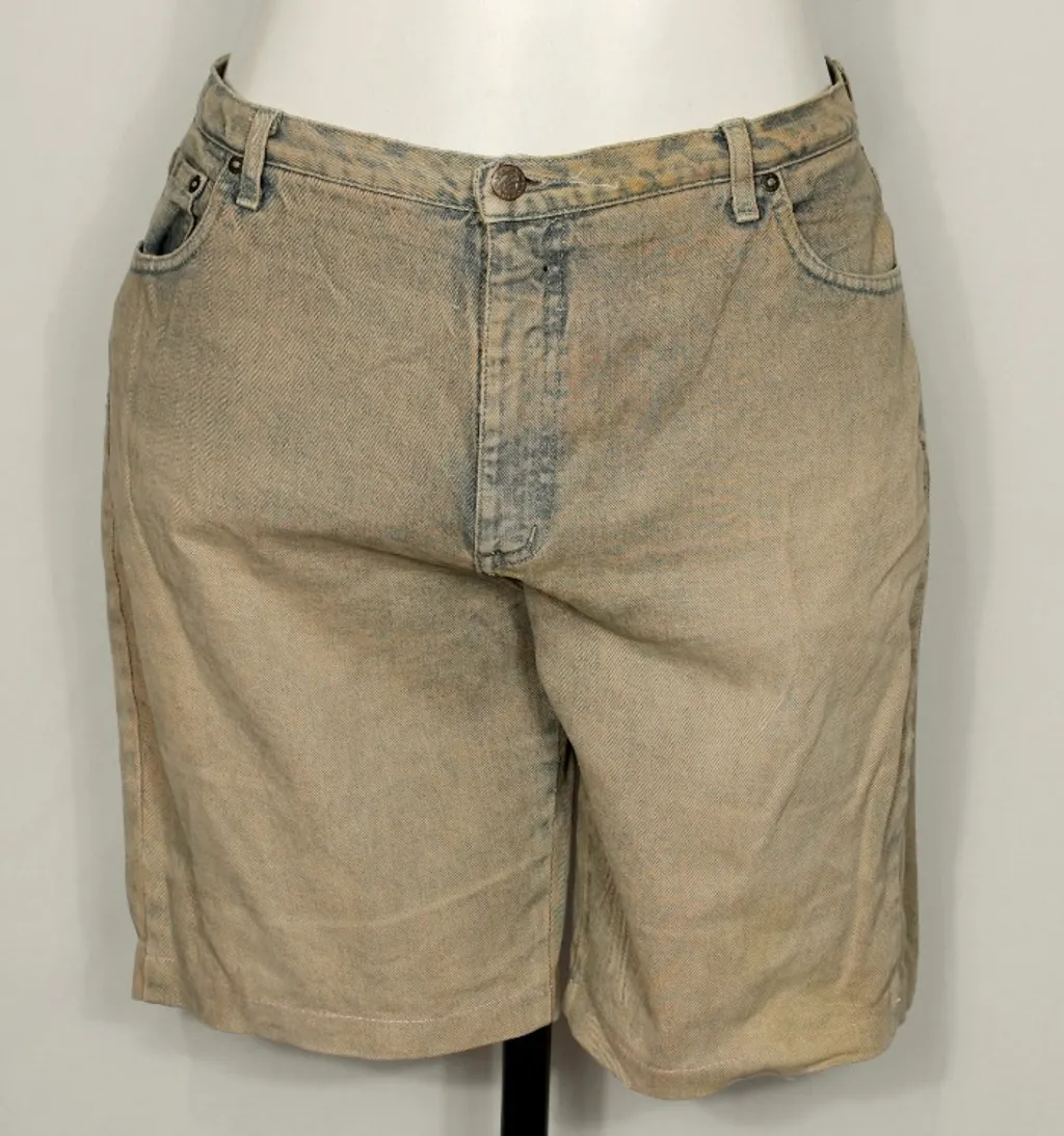 Cor: bege e azul Tecido: jeans sem elastano, não estica Modelo: feminino, jorts Bolsos: sim Cintura: alta Passante de cinto: sim Desgaste entre as pernas: leve desgaste, sugiro que não fique não justo nas coxas para não prejudicar mais Vintage: sim, com CGC Peça em boas condições e sem avarias. Tamanho 50 vintage, veste menos Veste 44 cintura baixa e 46 no lugar Medidas: Cintura: 96 cm Quadril: 120 cm Coxa: 58 cm Barra: 52 cm Gancho: 29 cm Compr da peça: 50 cm