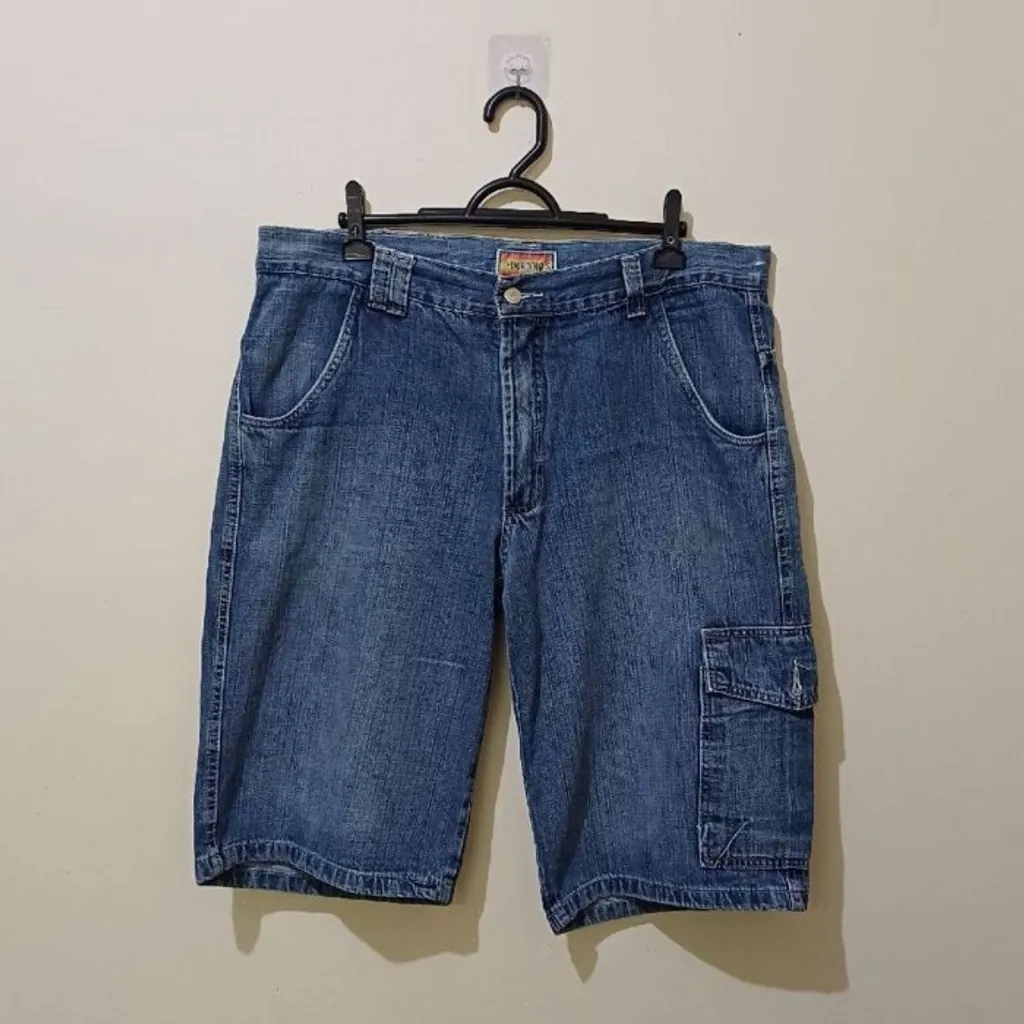 bermuda jeans masculina , bom estado de conservação , tecido firme , não possui avarias, apenas marcas de uso do tempo e pequenas manchinhas, mas nada que interfira no uso , possui 2 bolsos na frente e 2 atrás , e um na lateral na perna . tamanho 48 comprimento 65 cm largura da perna 31 cm quadril 57,5 cm