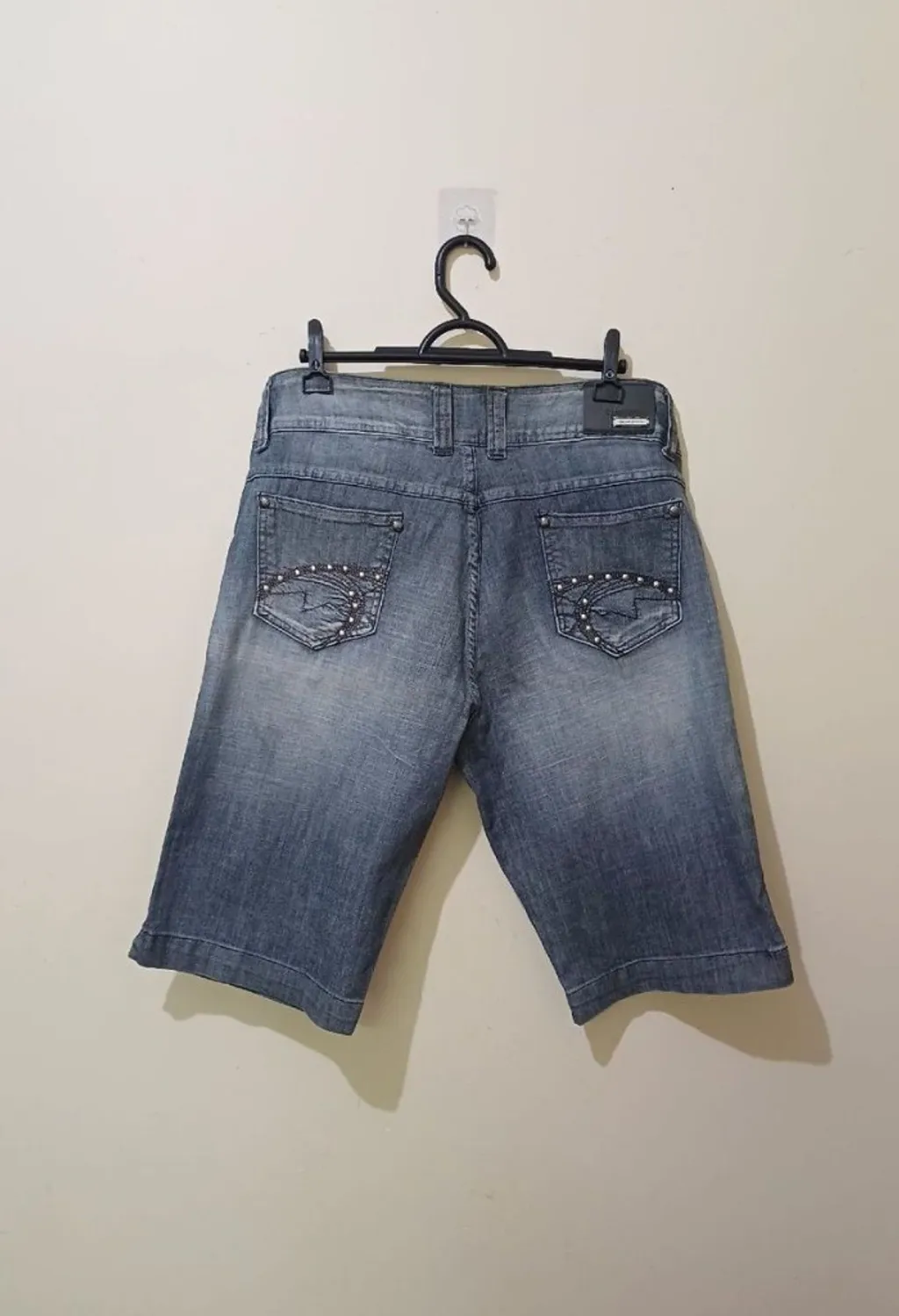 bermuda em bom estado , por ser uma peça mais antiga possui algumas manchas de uso do tempo, bem sutis como deixei na última foto, acredito não interfir no uso, sem avarias,possui esses lindos apliques de metal, os bolsos são somente atrás, tamanho 50 comprimento 61 cm largura da perna 29 cm quadril 52 cm cintura 47 cm