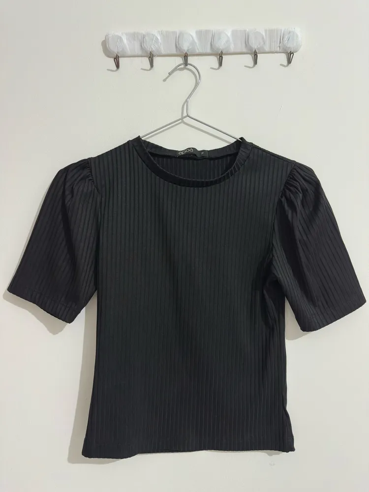 Blusa em tecido com mangas estilo bufantes. Combinando conforto e estilo! Peça usada e em ótimo estado de conservação.
