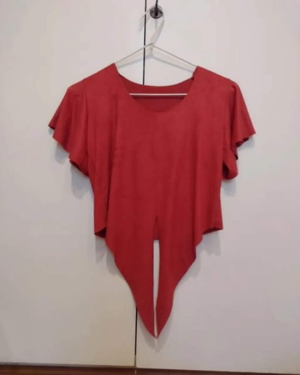 Blusa cropped de suede vermelha, com detalhe de nó na frente. ♥️🎀 Sem marca e sem numeração, mas é pequena. Veste PP e P. Usada algumas vezes, em perfeito estado de conservação.