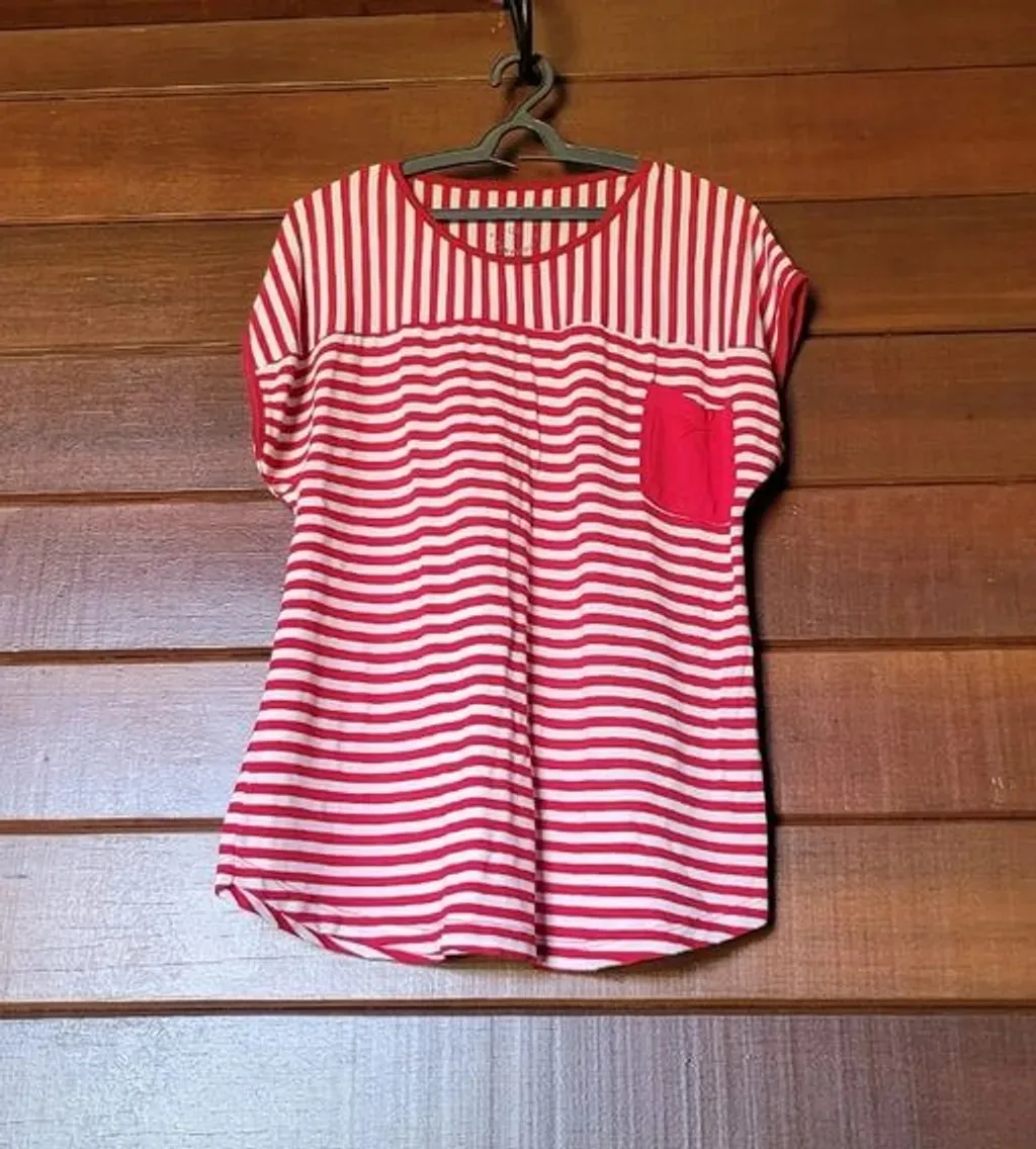Procurando aquela peça curinga para o dia a dia? Esta blusa da Heil Malhas une o charme das listras vermelhas com um corte moderno e confortável. O detalhe do bolso frontal e a inversão das listras no decote dão um toque super especial ao visual. envio: somente às sextas-feiras.