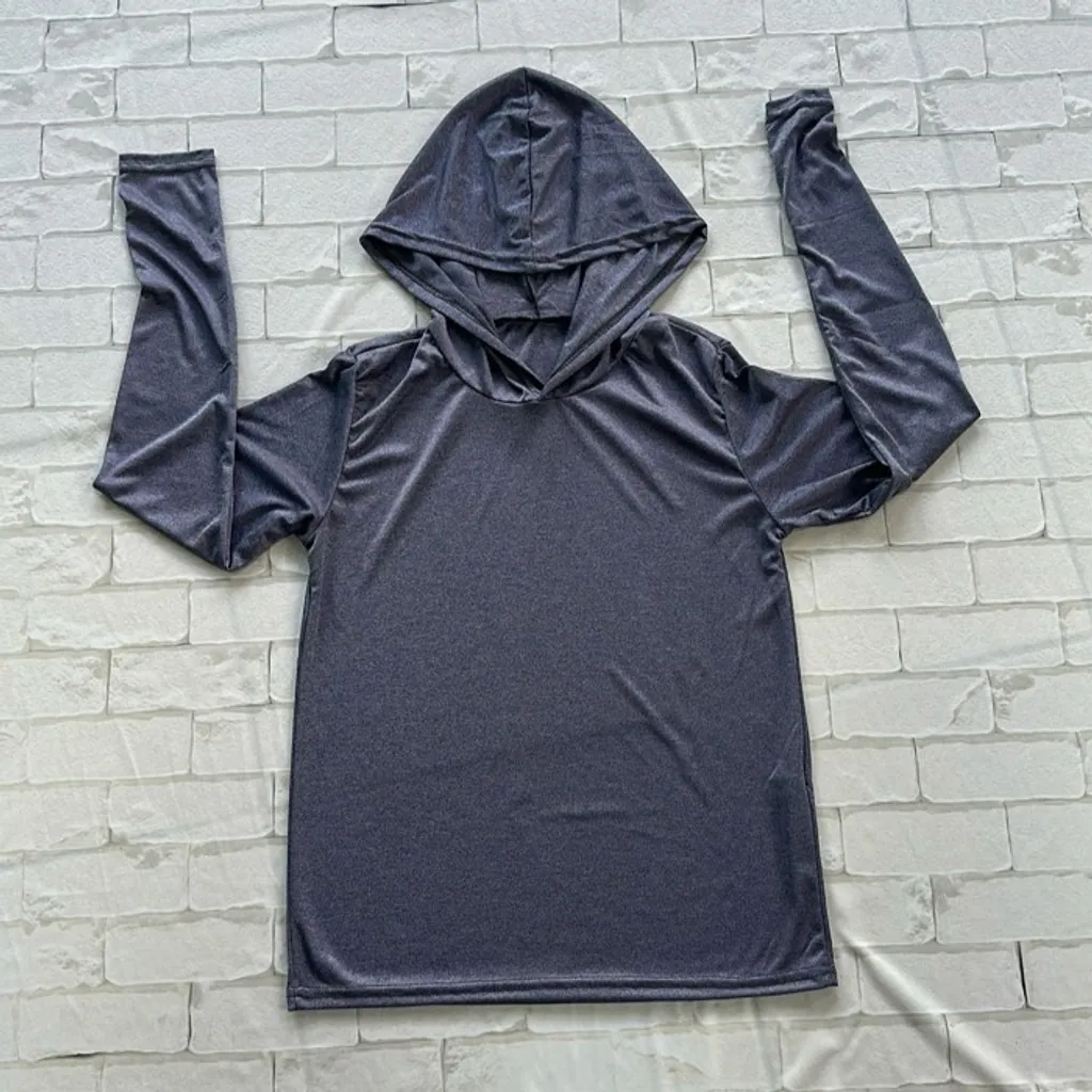 Peça nova e super prática para o seu treino! Blusa manga longa cinza em tecido tecnológico que não amassa e tem secagem ultra rápida. Ideal para Crossfit, academia ou lazer. Tamanho: GG Estado: Nova (nunca usada) Composição: 96% Poliéster / 4% Elastano (com elasticidade) Destaque: Possui capuz e toque macio. Uma peça básica e essencial para o dia a dia esportivo!