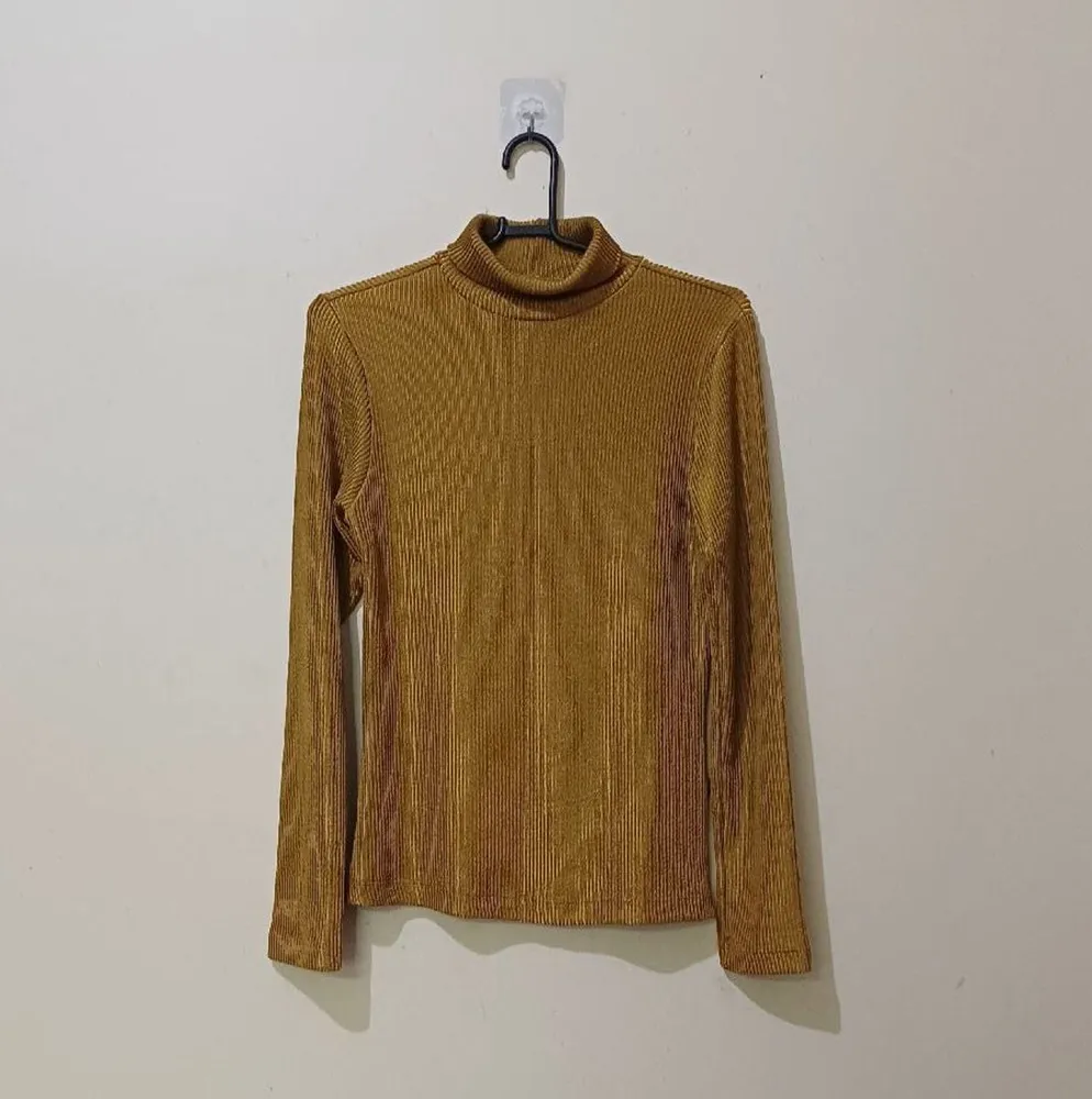 blusa de gola alta em muito bom estado de conservação por ser uma peça c.g.c , possui apenas uma pequena avaria na imenda da gola como deixei na última foto mas nada que atrapalhe o uso , o tecido dela é um tecido com elasticidade que possui um lindo brilho . medidas tamanho m comprimento 58 cm largura 34 cm mangas 56 cm altura da gola 11,5 cm