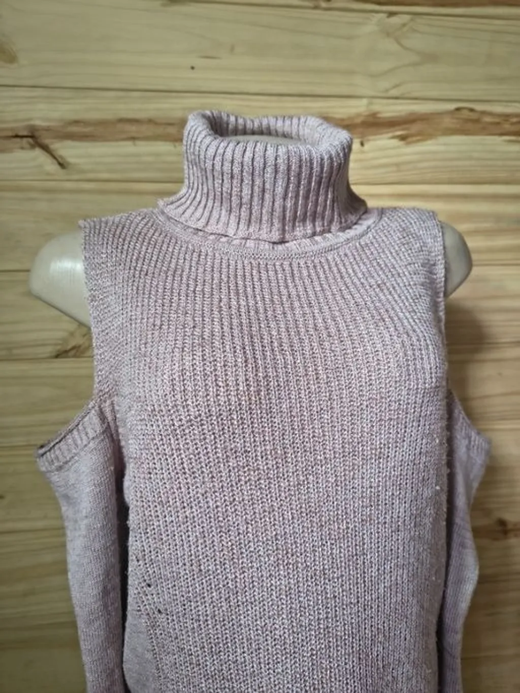 blusa tricot gola alta, manga longa, ombro de fora, cor rose busto 110cm até 154cm comprimento 64cm manga 54cm (ombro de fora) veste m/g sem avarias, excelente conservação blusa de lã viscose rose gold