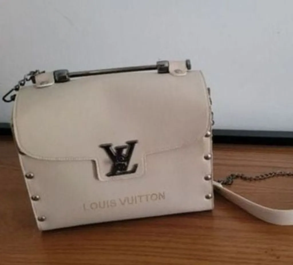 linda bolsa na cor bege e com design moderno. possui alça de mão em metal e alça longa removível em couro sintético com corrente, ideal para usar no ombro ou transversal. detalhes em tachas metálicas nas laterais e o icônico logo frontal inspirado. medidas: 18 cm de altura x 23 cm de largura x 9 cm de profundidade. envio: somente às sextas-feiras