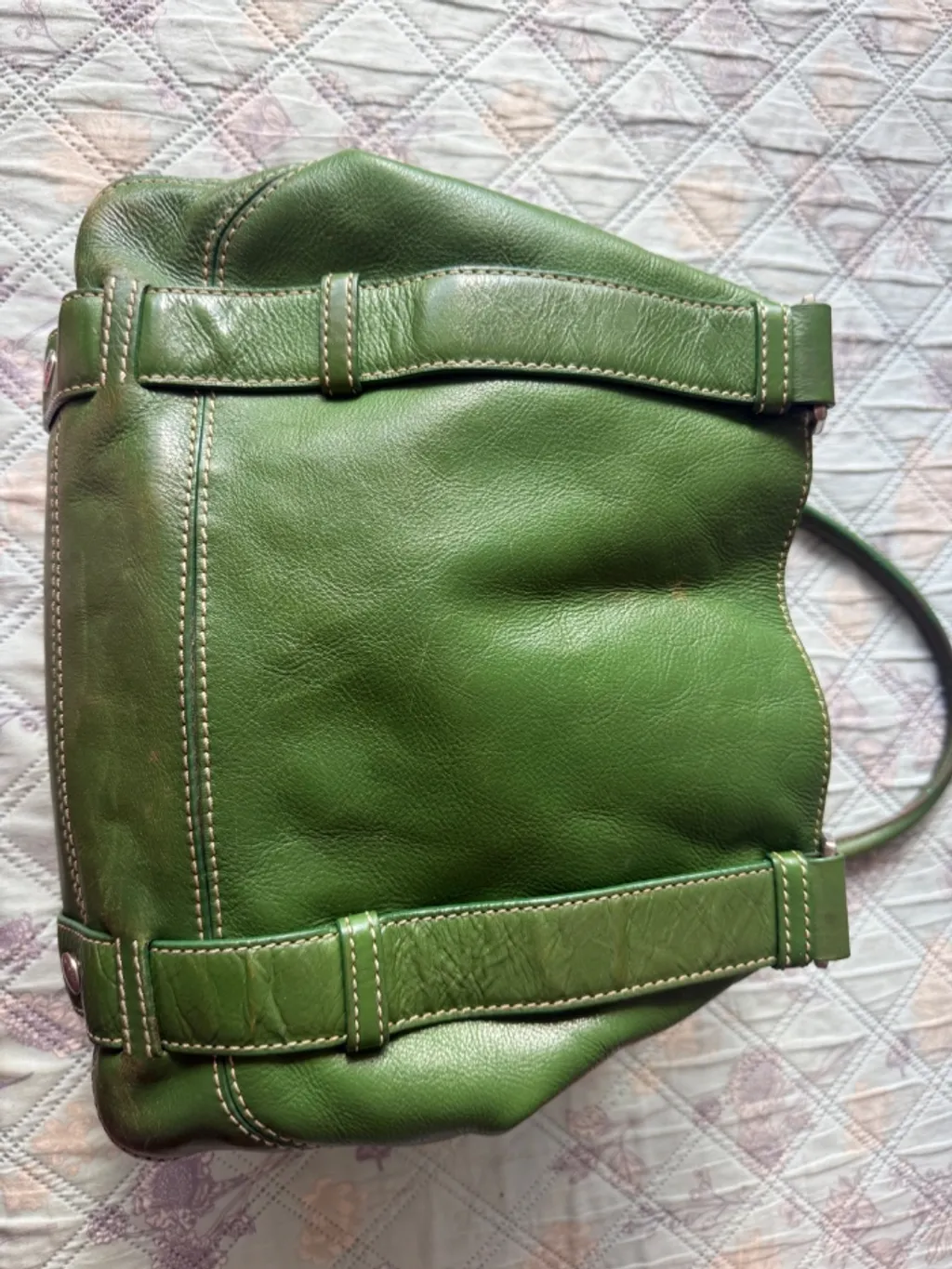 Bolsa Michael Kors em couro legítimo na cor verde, um tom elegante e diferente que valoriza qualquer look. Modelo vintage com design estruturado e acabamento em costuras aparentes. 🔹 Marca: Michael Kors 🔹 Material: couro legítimo 🔹 Cor: verde 🔹 Ferragens com gravação da marca 🔹 Alça de ombro confortável 🔹 Modelo espaçoso, ideal para uso diário 📌 Condição: usada, em bom estado geral, com marcas naturais de uso no couro (conforme fotos). 💚 Peça estilosa, de ótima qualidade e difícil de encontrar.