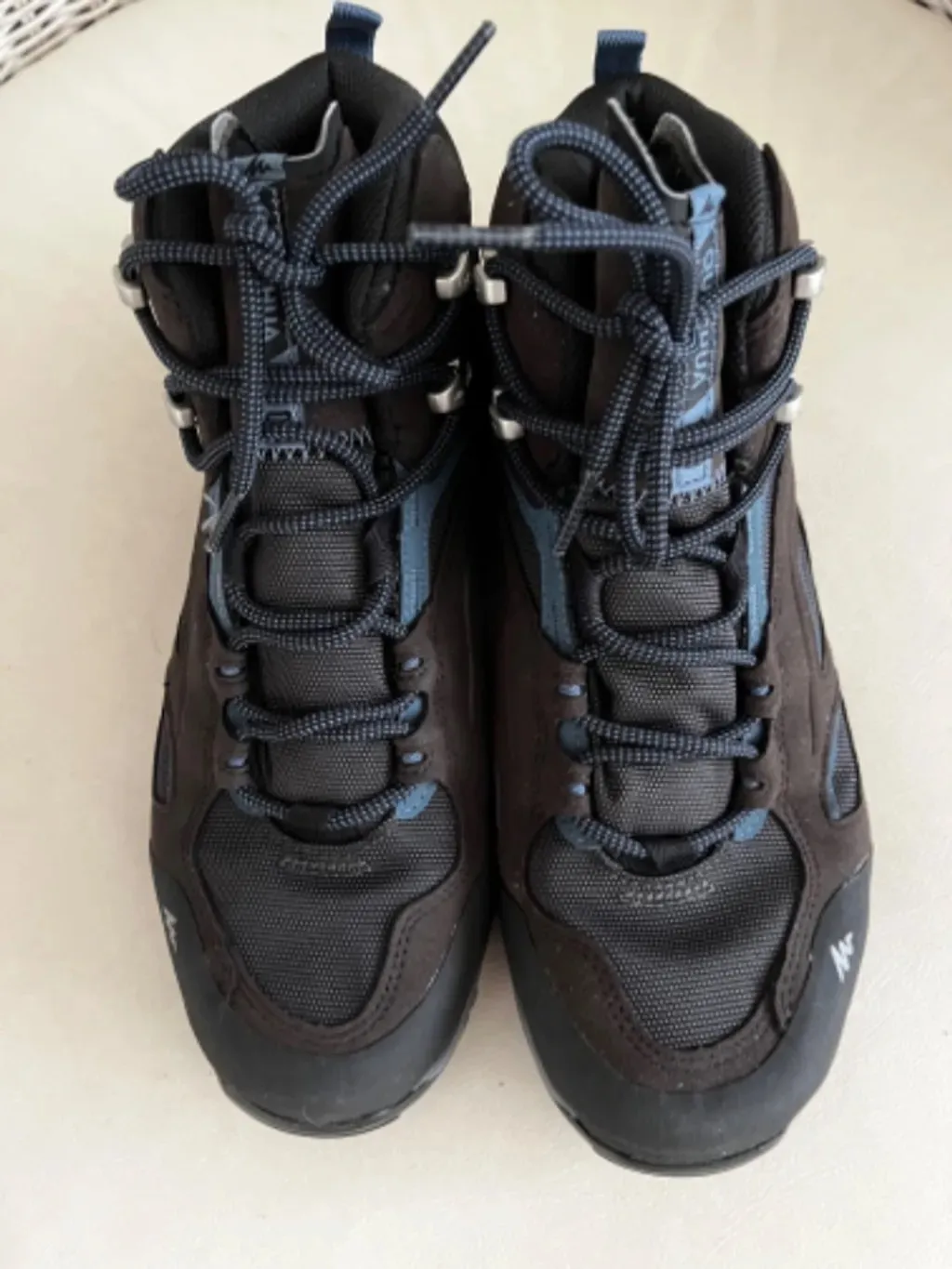 bota de trilha impermeável Quéchua MH 100, oferece bom equilíbrio entre tração e conforto. Mantém os pés secos em condições de umidade. Em perfeito estado de conservação