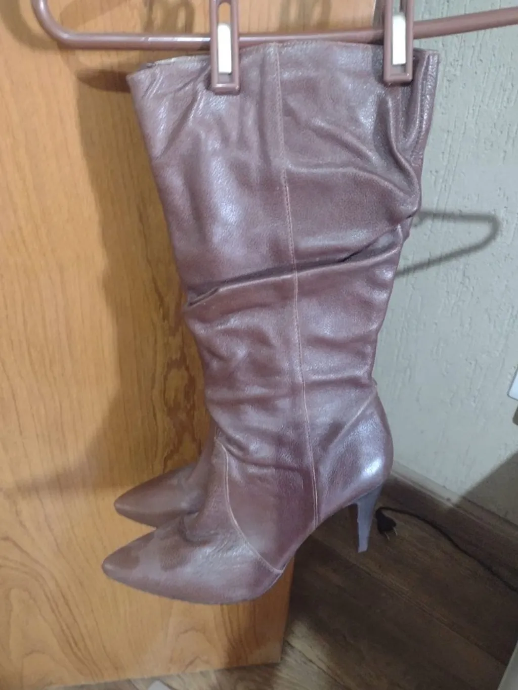 Bota feminina Ferni caramelo em bom estado. Modelo com salto fino e bico fino, elegante.