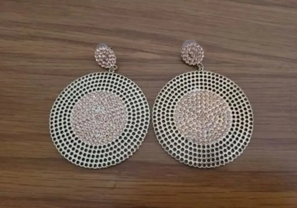 lindo brinco circular glamour gold com o design clássico do formato redondo com um acabamento cravejado impecável, garantindo um brilho que ilumina o rosto e atrai todos os olhares. foi usado e estão faltando 3 pedrinhas, mas nada que comprometa o seu uso( veja fotos). diâmetro: 4,5 cm x 8 gramas. envio: somente às sextas-feiras.
