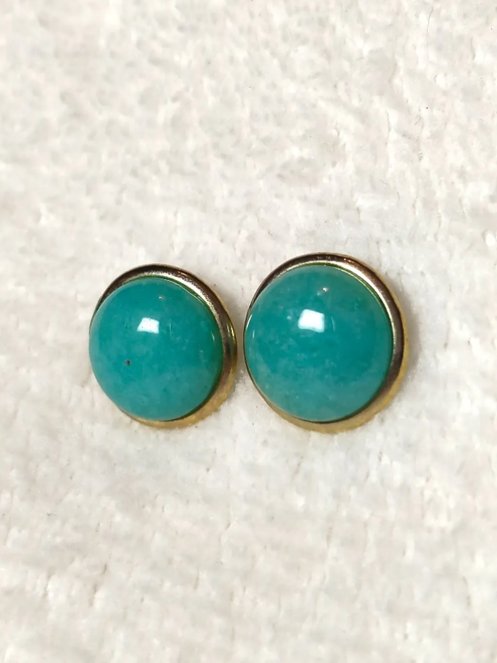 brinco dourado com pedra turquesa, 1.50 cm de diametro