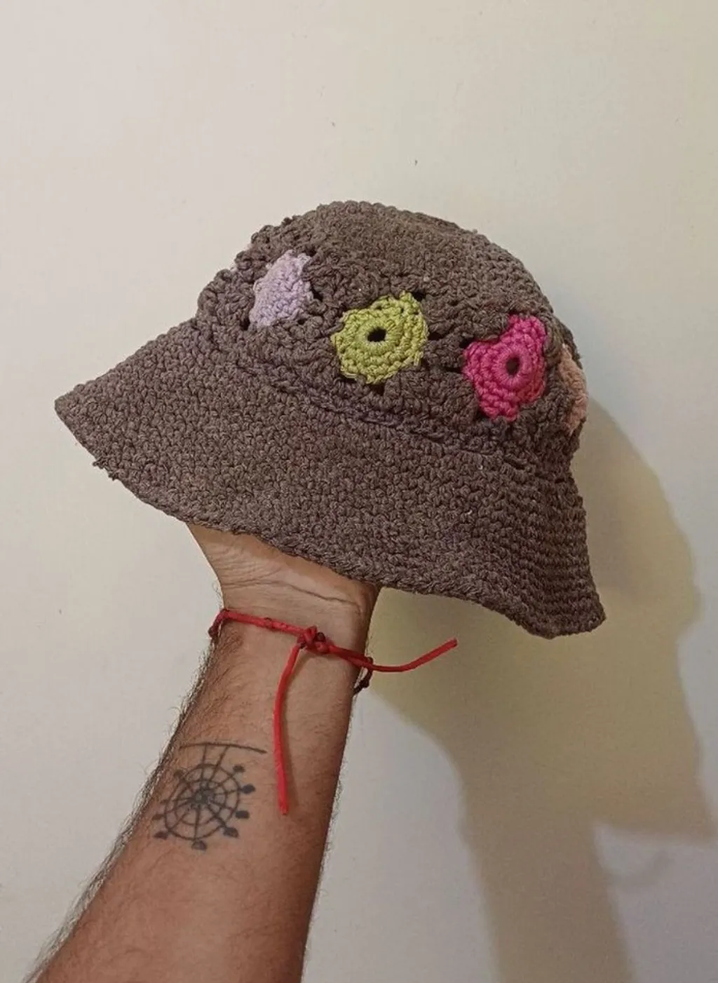 bucket marrom feito em croche , em bom estado , possui alguns sujinhos e alguns desfiados como deixei nas fotos , acredito que não seja algo que interfira no uso , paleta linda medidas tamanho 56 cm de circunferência peguei a fita passei entorno dele para tirar a medida, você pode fazer o mesmo pra ver se a circunferência bate.