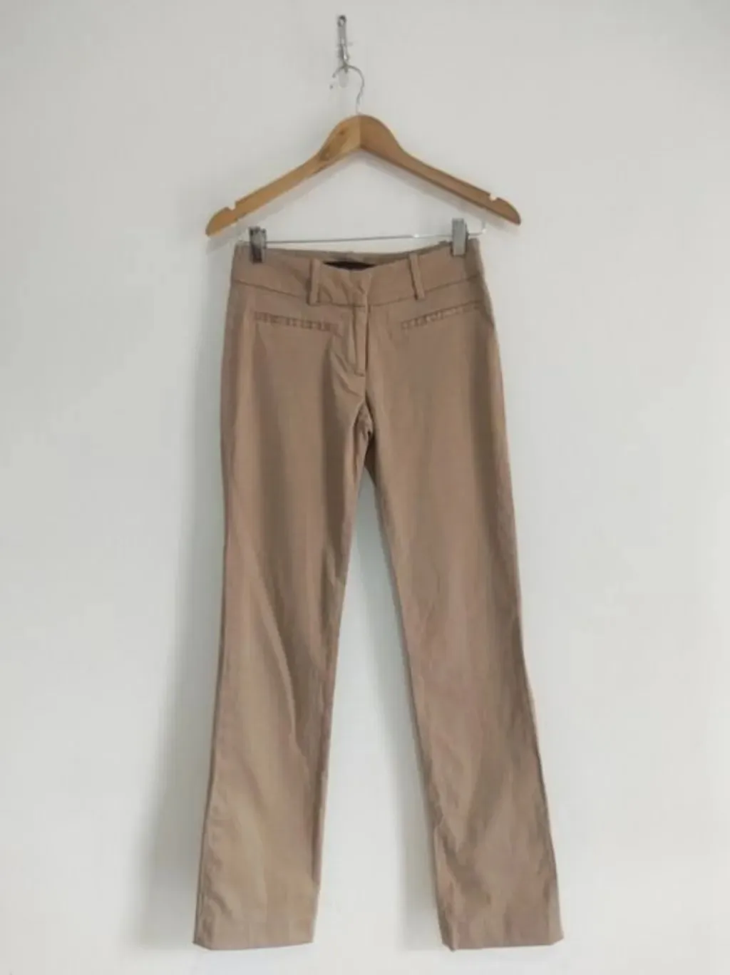 CONFIRA AS MEDIDAS ABAIXO: Possui cintura baixa, fechamento com zíper e colchetes, bolsos não funcionais, passantes para cinto e modelagem reta. Usada, porém em excelente estado de conservação. Tamanho: 36 Cor: Bege Tecido: Algodão e elastano Marca: Zara Condição da peça: 10/10 Medidas: Cintura: 74cm estica até 78cm Quadril: 86cm estica até 100cm Coxa: 50cm estica até 60cm Comprimento: 97cm Gancho: 20cm