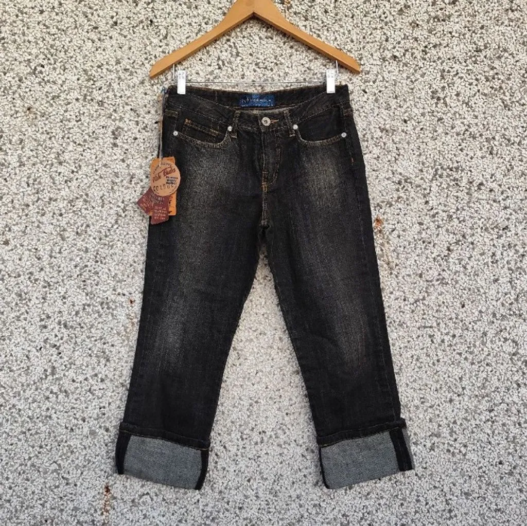Calça jeans capri, com a barra dobrada. Cintura média-baixa. Peça nova, com etiqueta, direto dos anos 2000. Marca Vide Bula, tamanho 40. Medidas: 72cm cintura / 96cm quadril / 23cm gancho / 60cm comprimento da perna / 82cm comprimento total.