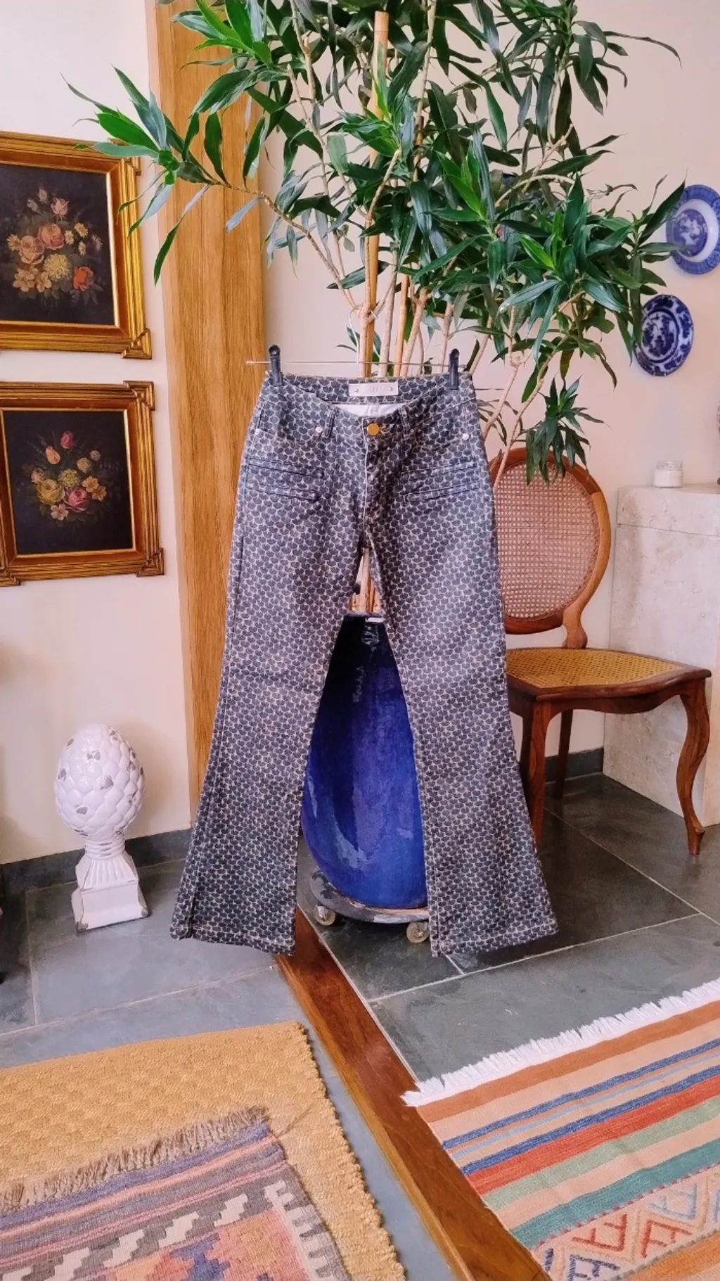 Um clássico repaginado! Flare Animale com estampa delicada, caimento impecável e presença na medida certa. Marca: Animale Tamanho: 36 Medidas: 70 cm (cintura - tem um pouco de elastano); 103 cm (comprimento); aprox. 90 cm (quadril) Em ótimo estado de conservação!