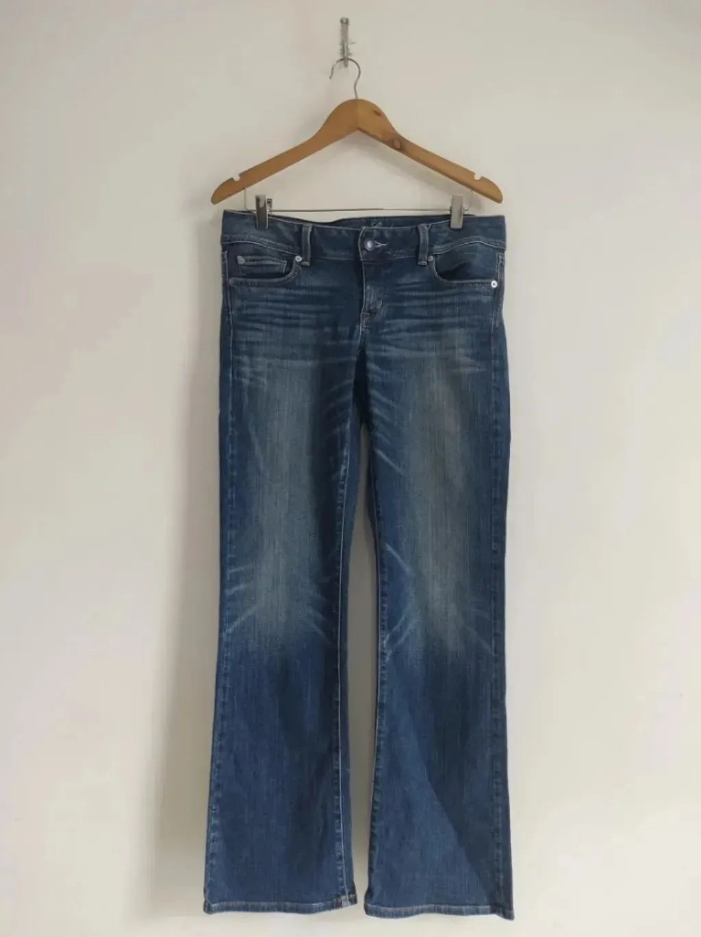 CONFIRA AS MEDIDAS ABAIXO: Possui cintura baixa, fechamento com zíper e botão, bolsos funcionais e modelagem reta. Usada, porém em excelente estado de conservação. Tamanho: 10 veste 44 Tecido: Denim e elastano Marca: American Eagle Condição da peça: 10/10 Medidas: Cintura: 88cm estica até 92cm Quadril: 100cm estica até 112cm Coxa: 56cm estica até 64cm Comprimento: 101cm Gancho: 20cm