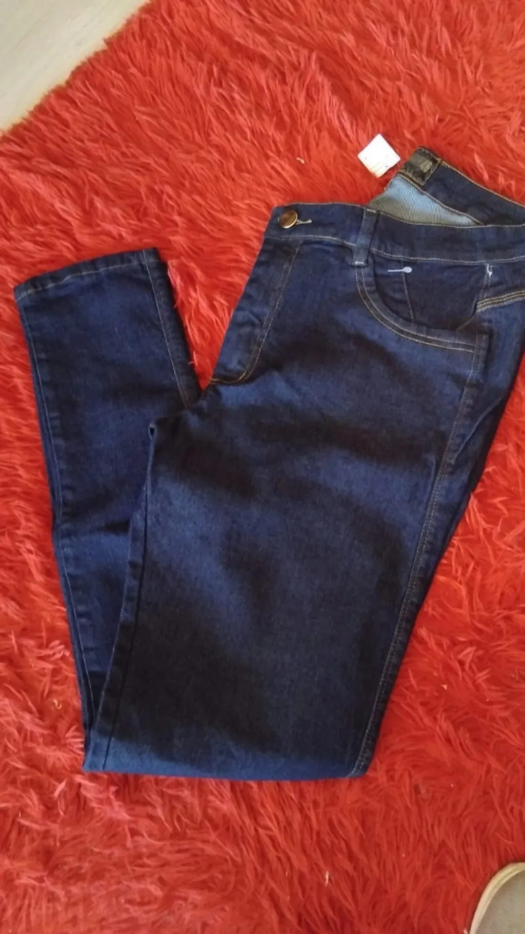 Oportunidade! Calça jeans feminina PRODUTO NOVO, modelo super moderno com cós alto que modela a silhueta. Tecido premium com lycra, garantindo conforto total e ajuste perfeito ao corpo. Ideal para o dia a dia ou sair. ✨ Tamanho: 46 ✨ Destaque: Jeans escuro versátil e corte atual.