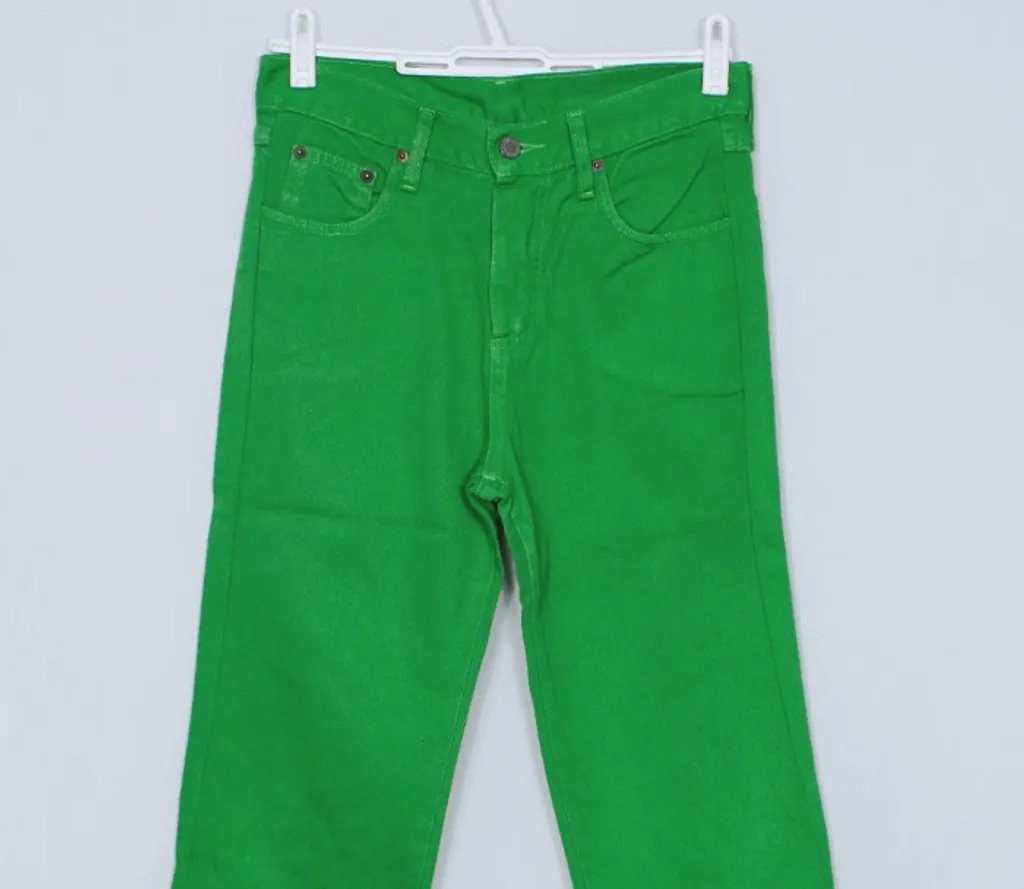 Cor: verde Tecido: jeans sem elastano, não estica Modelo: feminino, reta Bolsos: sim Cintura: média Passante de cinto: sim Desgaste entre as pernas: não possui Vintage: sim, com CGC Peça em perfeitas condições e sem avarias. Tamanho 40, mas é pequena, veste 34 (favor verificar as medidas): Medidas: Cintura (circunferência): 72 cm Quadril (circunferência): 90 cm Coxa (circunferência): 44 cm Barra (circunferência): 32 cm Gancho: 25 cm Comprimento da peça: 99 cm