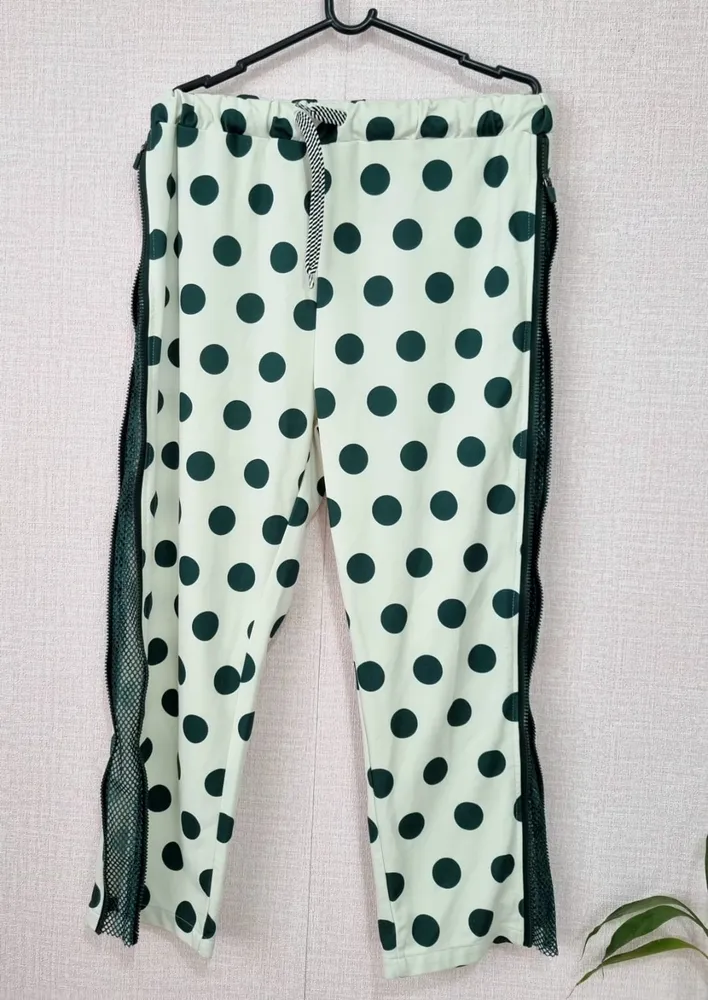 calça da marca Farm modelo jogger com poa verde e ziper nas laterais que é possivel abrir, embaixo tem uma telinha, modelagem reta com elástico no cos e cordão listrado para ajuste. Tam P/38 sem nenhum defeito