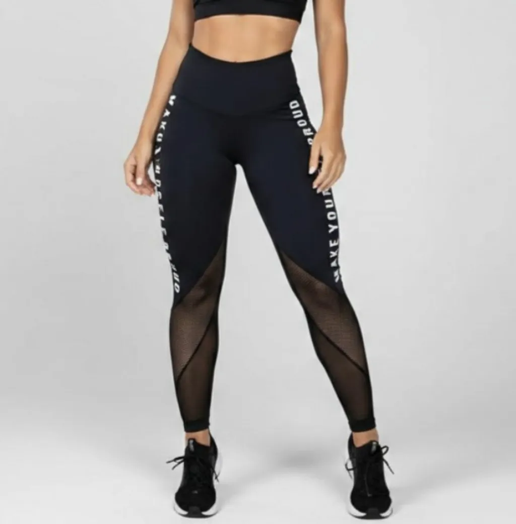 Legging fitnees com a cintura alta para treino da marca Donna Carioca, com controle abdominal, efeito levanta bumbum mas sem elástico, não transparente e anticelulite, com aplicação de tecido telado na parte de baixo, tamanho P. Cintura: 52 cm Quadril: 66 cm Gancho: 24 cm Comprimento: 88 cm