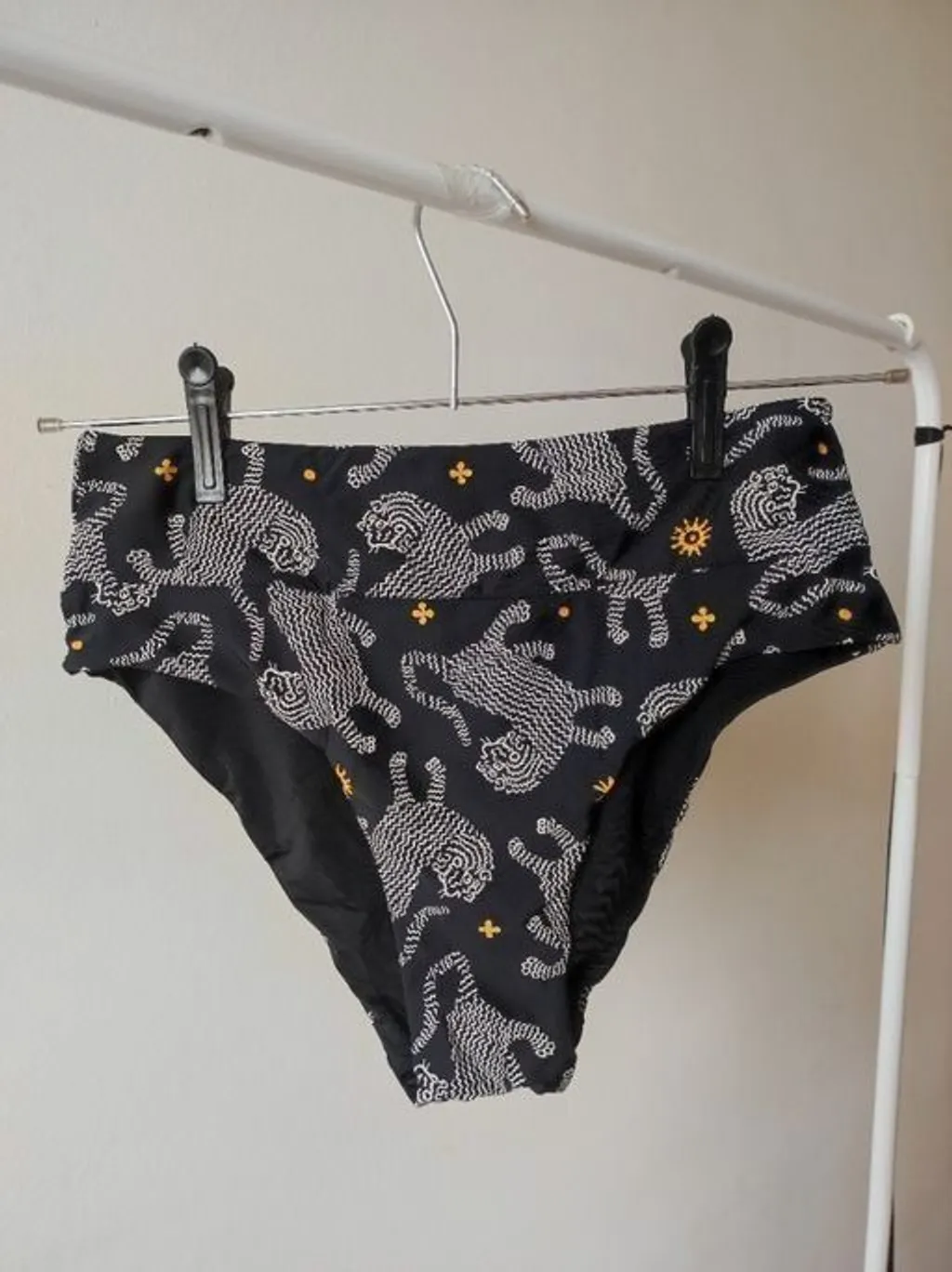 calcinha de biquini preta com tigres, marca women secrets, tamanho g