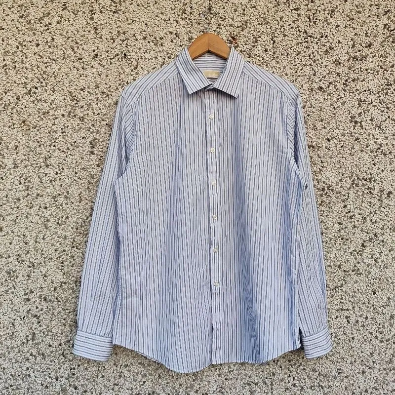 Camisa masculina manga longa, listrada em azul e branco. Modelo slim fit. Marca Michael Kors, tamanho 16½ americano, veste aproximadamente G, confira as medidas. Composição: 100% algodão. Medidas: 47cm ombro a ombro / 118cm largura / 77cm comprimento / 65cm comprimento da manga (do ombro ao punho).