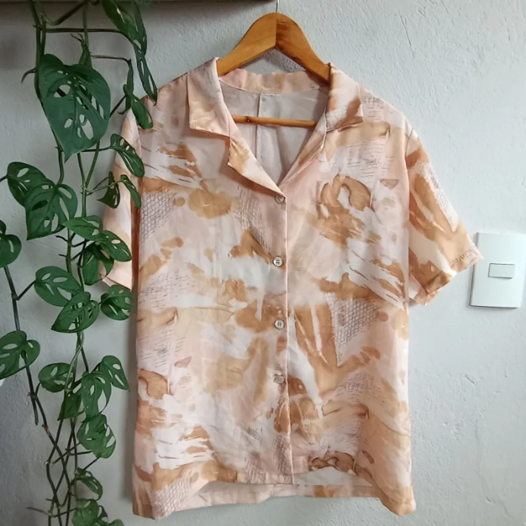 Camisa vintage feita à mão, daquelas peças únicas que a gente não encontra de novo. tecido leve com estampa em tons terrosos e botões em madrepérola que dão o charme final. Caimento confortável e estiloso, perfeita para looks despretensiosos com personalidade. Tamanho GG Largura: 50 cm | comprimento 74 cm.