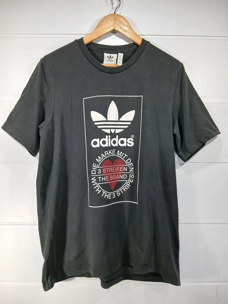 camiseta adidas preta, tamanho g, com estampa frontal do logo da marca. feita em 100% algodão, é uma peça confortável e versátil para o dia a dia. em excelente estado de conservação.