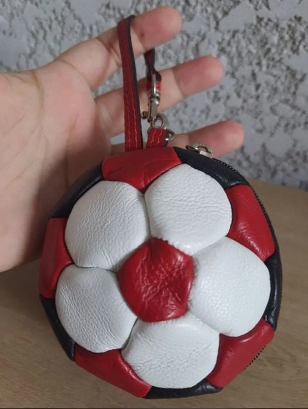 chaveiro porta moedas smartbag couro legítimo cores: branco, vermelho e preto 10 cm de diâmetro nome da marca em relevo na parte de trás usado, sem avarias