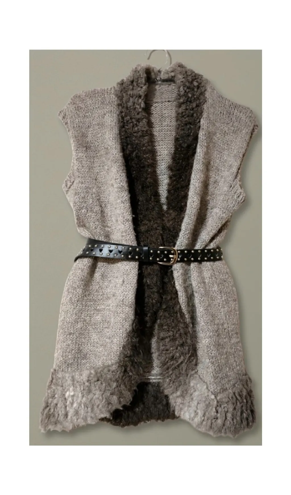 Colete de lã marrom com detalhe em pelúcia na gola e barra 🤎 Modelo alongado (81 cm), quentinho e super versátil. Fica lindo com camisa, gola alta ou até com cinto marcando a cintura (não incluso). 📏 Ombro 46 cm | Largura 50 cm Veste M ou G (confira medidas).