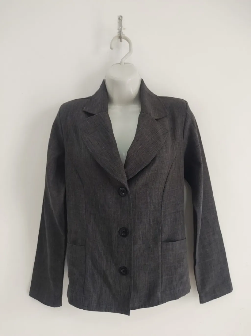 CONFIRA AS MEDIDAS ABAIXO: O blazer possui fechamento com três botõesm ombreiras e bolsos funcionais. A calça possui cintura média, fechamento com zíper e botão e bolsos laterais. Usado, porém em excelente estado de conservação. Tamanho: P Cor: Cinza Tecido: Poliéster Condição da peça: 10/10 Medidas blazer: Busto: 95cm Cintura: 86cm Comprimento: 55cm Comprimento manga: 57cm Ombro: 38cm