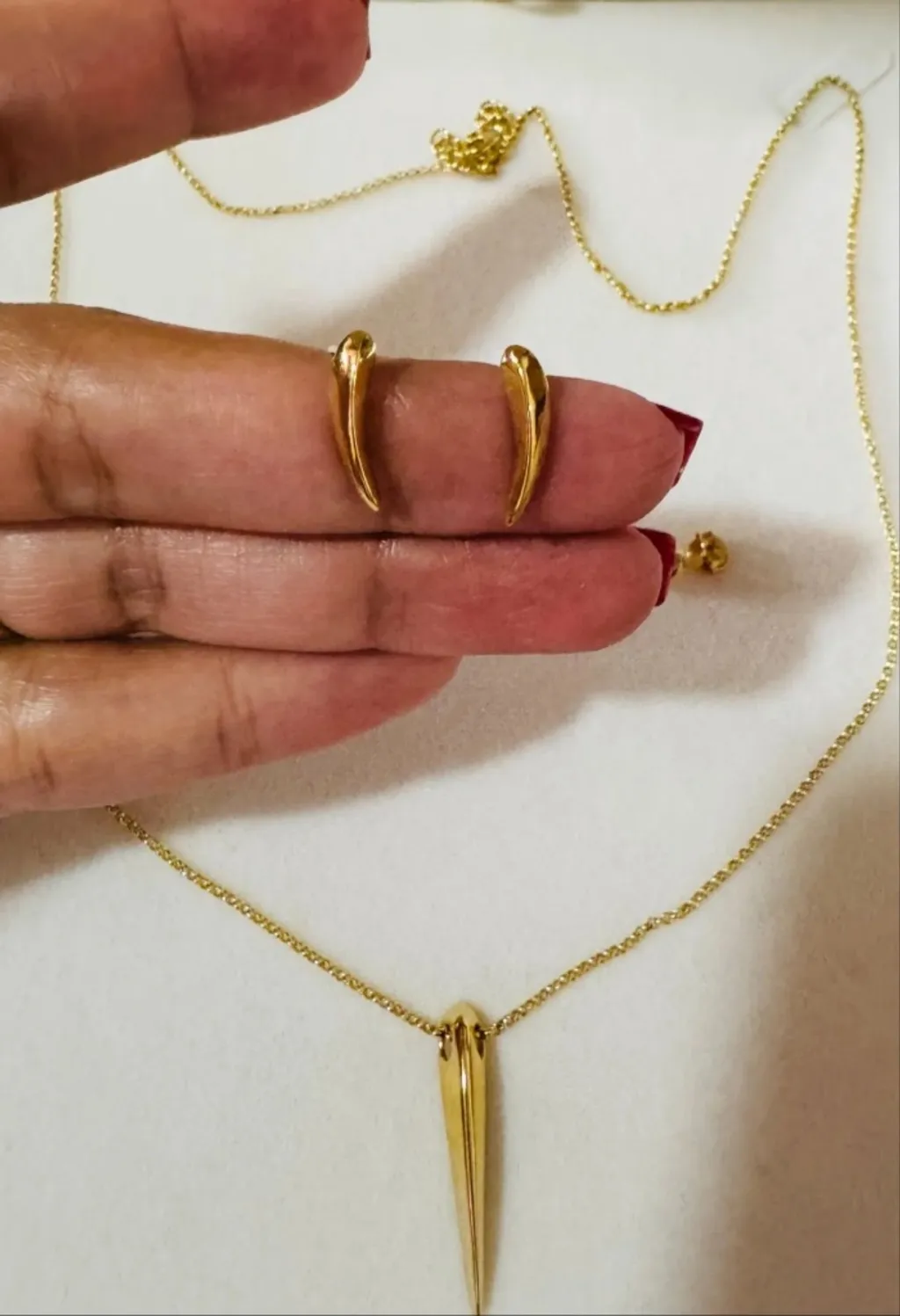 conjunto colar com pingente e brincos monte carlo prata 925 com banho de ouro 18k colar 50cm e ajuste até 55cm pingente não sai da corrente. medidas dos brincos 1,5cm pingente 3,0cm está impecável. não tenho mais a caixa da loja mais vai no estojo de veludo. usei 2 vezes esta novo