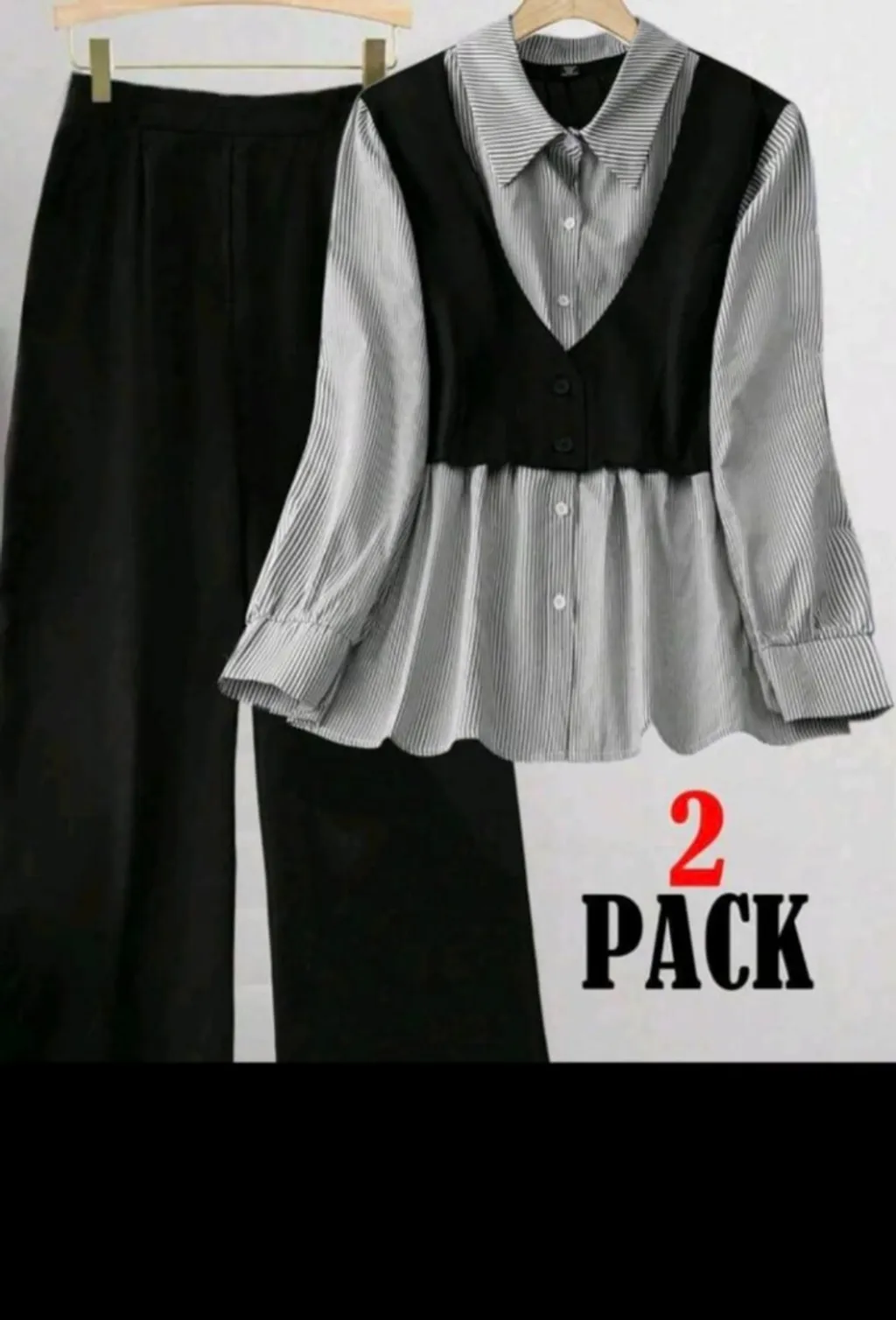 Conjunto shein tamanho 50, composto por camisa social com babados e calça social preta, a calça não possui bolsos, mas tem elástico na cintura na parte de trás para melhor ajuste. o conjunto é ideal para diversas ocasiões, oferecendo conforto e estilo. Medida da calça: 96 cm cintura comprimento: 103 usado 2 x