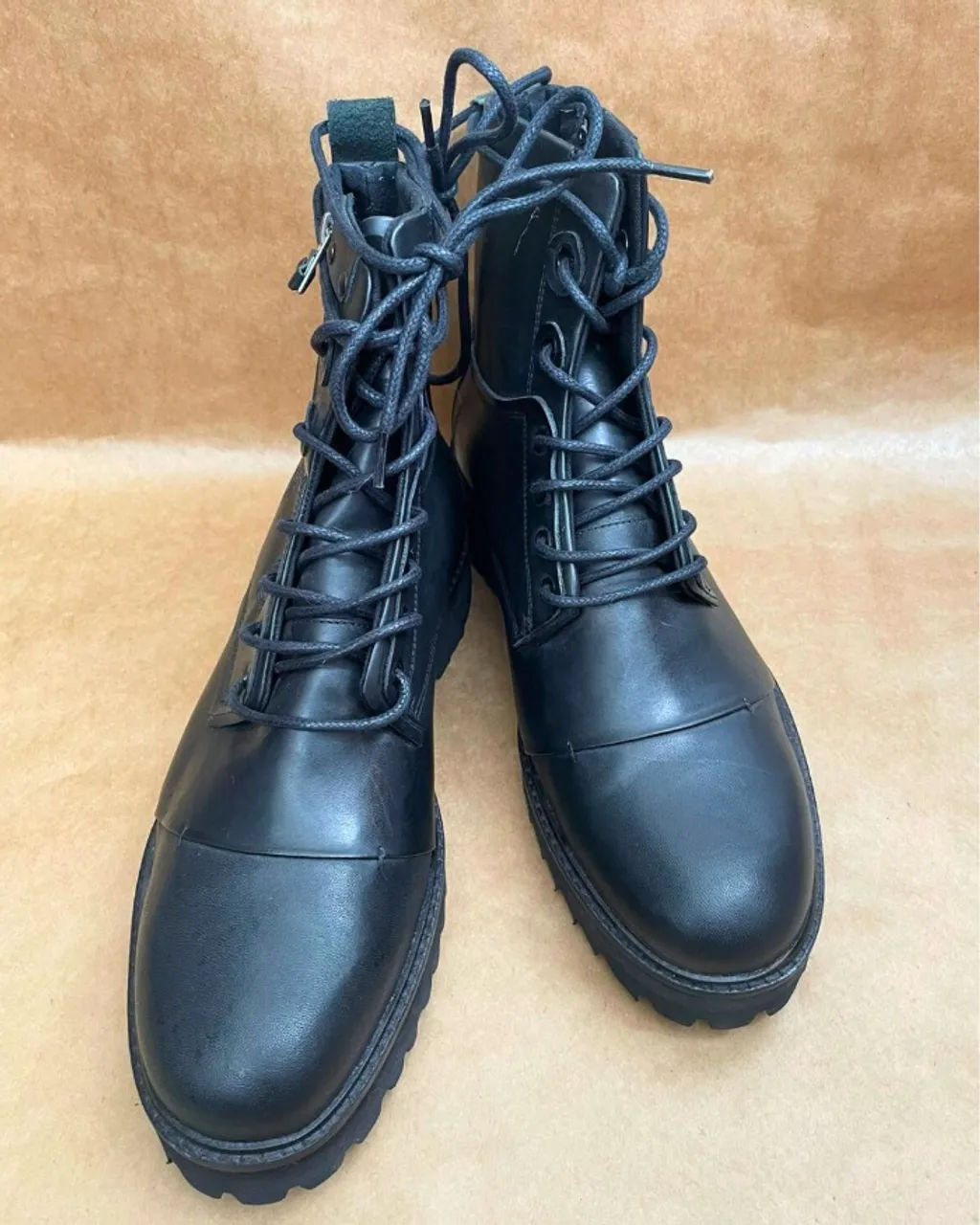 Coturno original John John, modelagem masculina, em couro legítimo, na cor preta. Com amarração por cadarço e fechamento por zíper lateral. Comprimento: 26cm / Cano: 17cm / Solado: 4cm