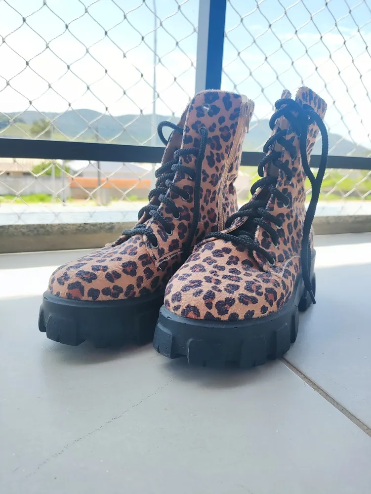 Arrase no visual com este coturno tratorado de oncinha! Conforto e estilo em um só calçado, perfeito para qualquer ocasião. Coturno em ótimo estado, comprei e acabei não conseguindo usar.