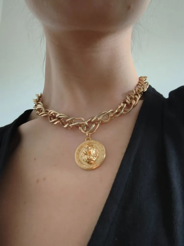 Gargantilha de metal dourada com pingente de leão