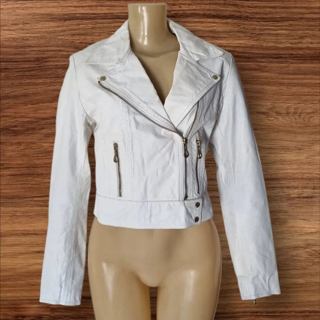 jaqueta branca em couro legítimo, modelo biker, impecável