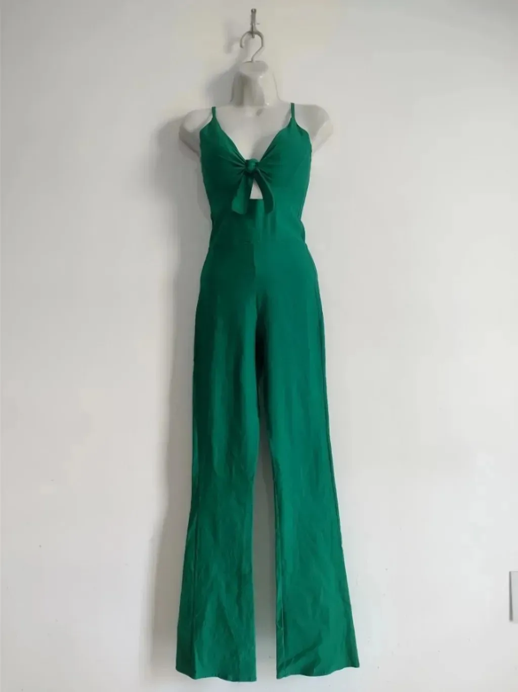 CONFIRA AS MEDIDAS ABAIXO: Possui bojo, alças com regulagem de altura, decote v com amarração e decote vazado, fechamento com zíper traseiro e modelagem justa com barra reta. Usado, porém em excelente estado de conservação. Tamanho: P Cor: Verde Tecido: Bengaline Condição da peça: 10/10 Medidas: Busto: 70cm estica até 88cm Cintura: 60cm estica até 74cm Quadril: 70cm estica até 96cm Coxa: 46cm estica até 62cm Comprimento: 149cm Gancho: 27cm