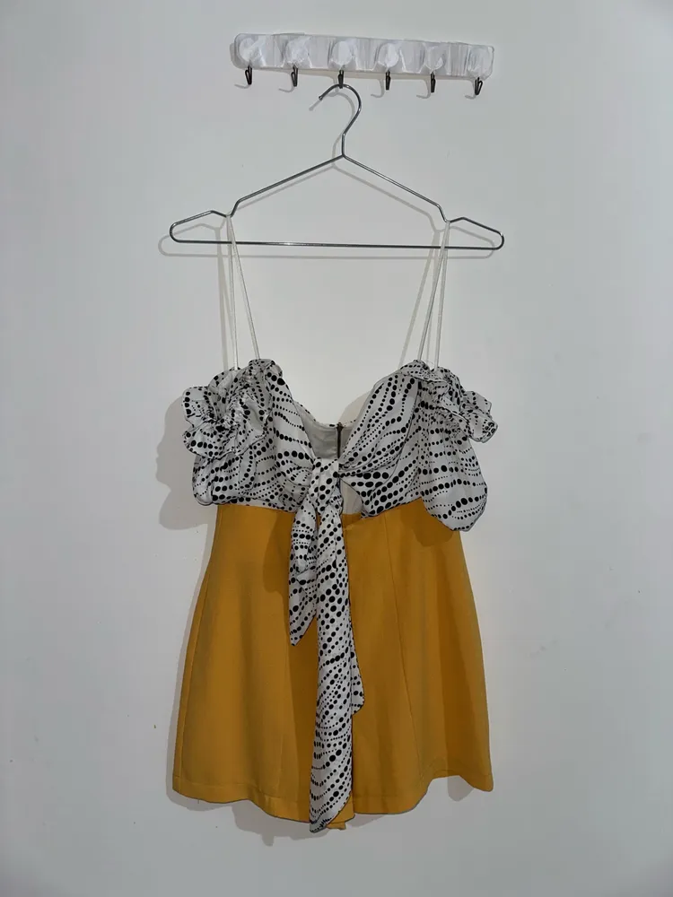 Macaquinho com mangas ombro a ombro e amarração frontal. Uma peça que te deixa arrumada para qualquer ocasião. Peça em ótimo estado de conservação.