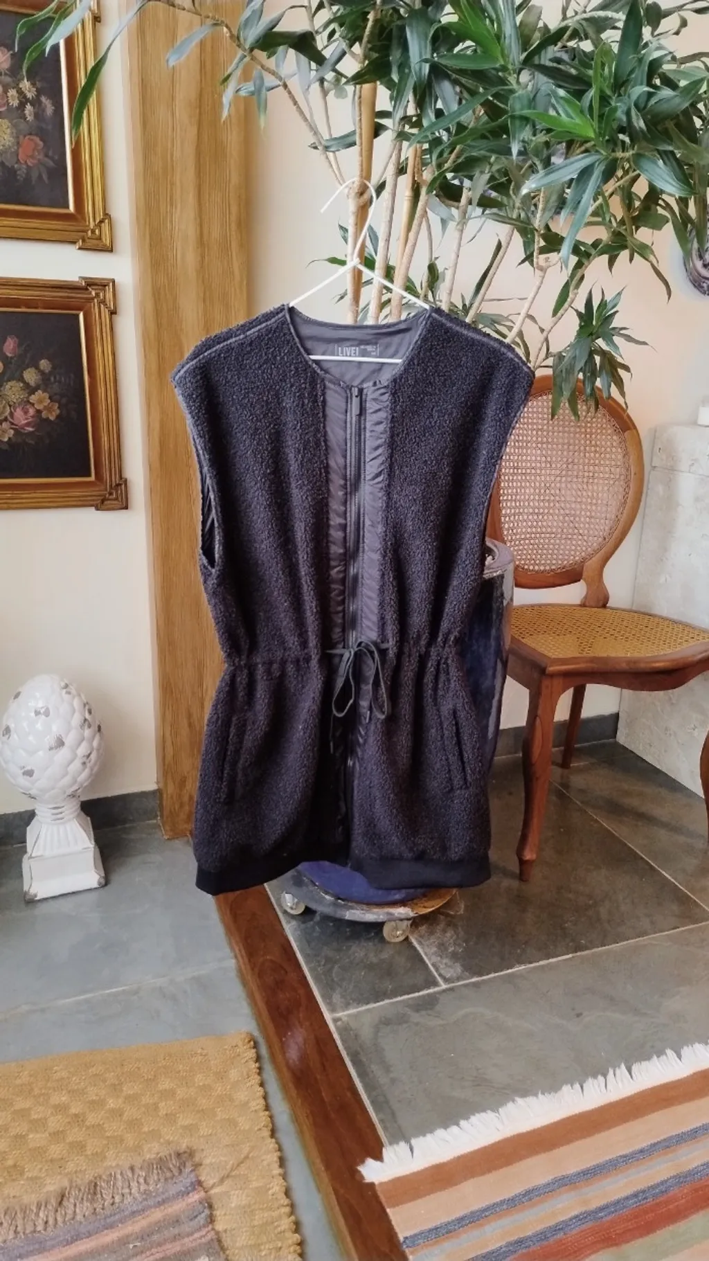 Colete preto Live! em material tipo teddy, super quentinho e estiloso. Possui zíper frontal, bolsos e ajuste na cintura que valoriza o corpo. Perfeito para sobrepor com tricô, camisa ou moletom. Versátil e atemporal. Marca: Live! Tamanho: M Cor: Preto Medidas: 83 cm (comprimento); 91 cm (cintura - com regulagem elástica); 106 cm (busto) Peça nova, nunca usado!