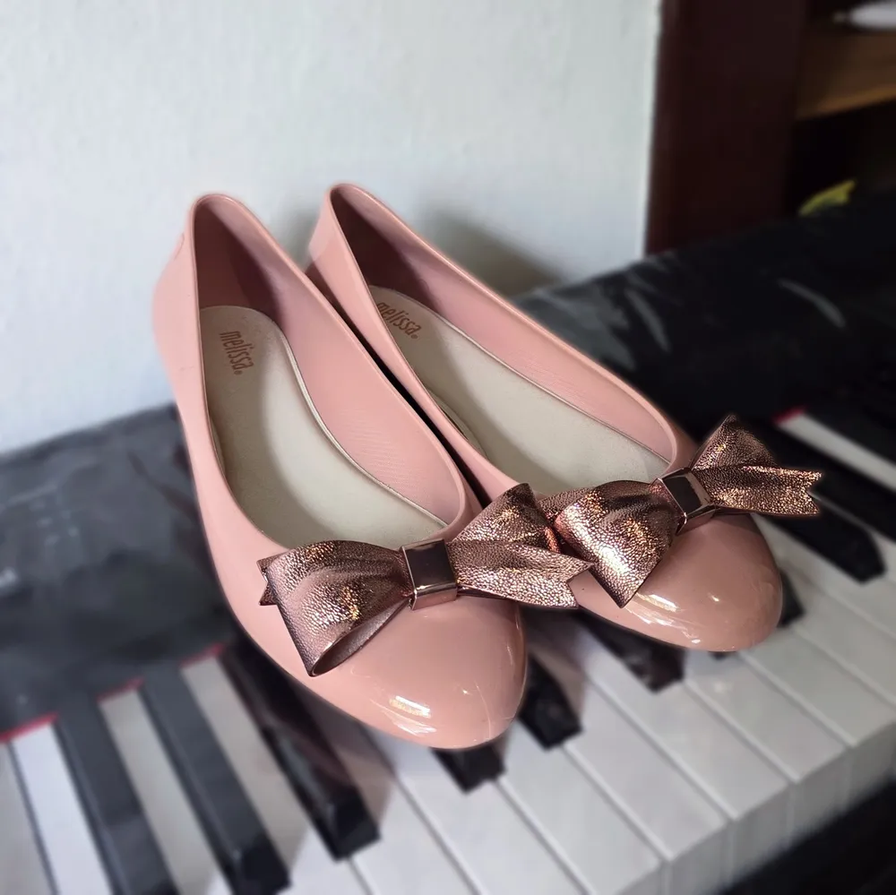 Sapatilha Melissa Doll III cor rosê com laço metalizado. Em excelente estado de conservação, ainda com cheirinho característico da marca. Tamanho 35