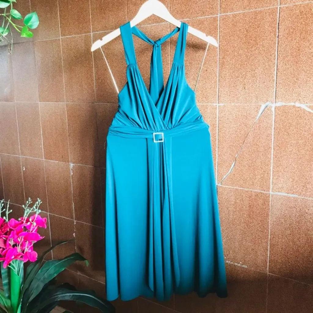 Vestido feminino verde esmeralda com modelagem midi, elegante e sofisticado. Possui caimento leve e confortável, com amarração no pescoço que valoriza o colo. Ideal para festas e ocasiões especiais. Peça versátil, moderna e pronta para compor looks elegantes.