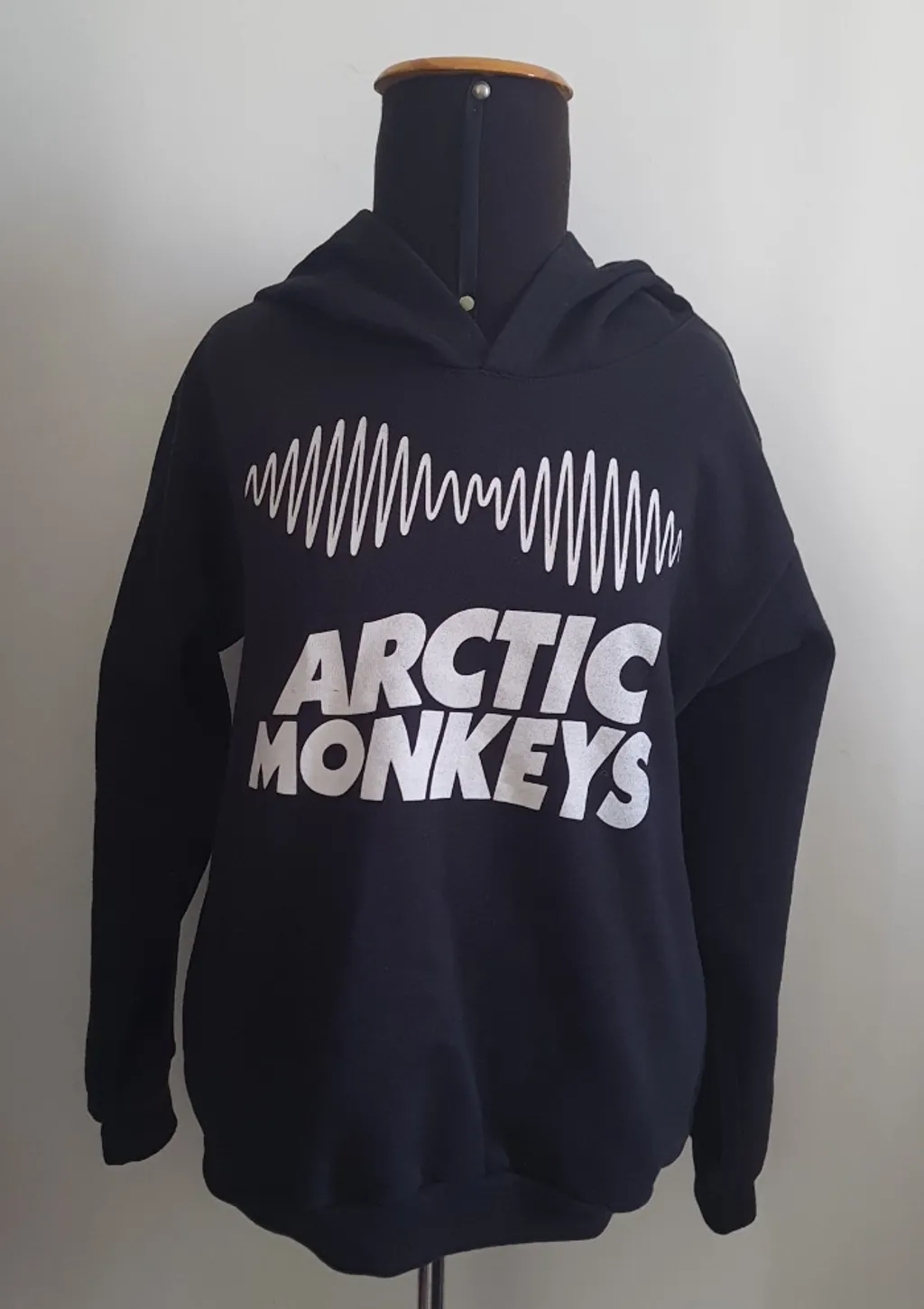 moletom arctic monkeys possui dois bolsos laterais e capuz tamanho: p composição: 50% algodão 50% poliéster comprimento: 60cm largura: 50 cm manga comprimento: 56cm usado, em bom estado de conservação