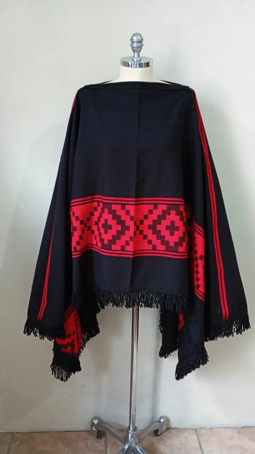 pala poncho argentino de lã preto com vermelho novo veste até o