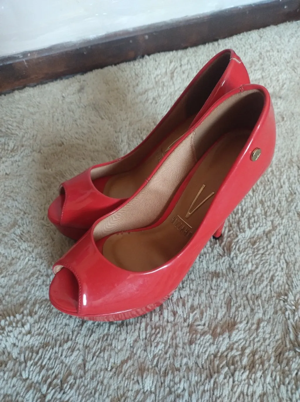 Peep toe verniz vermelho Vizzano