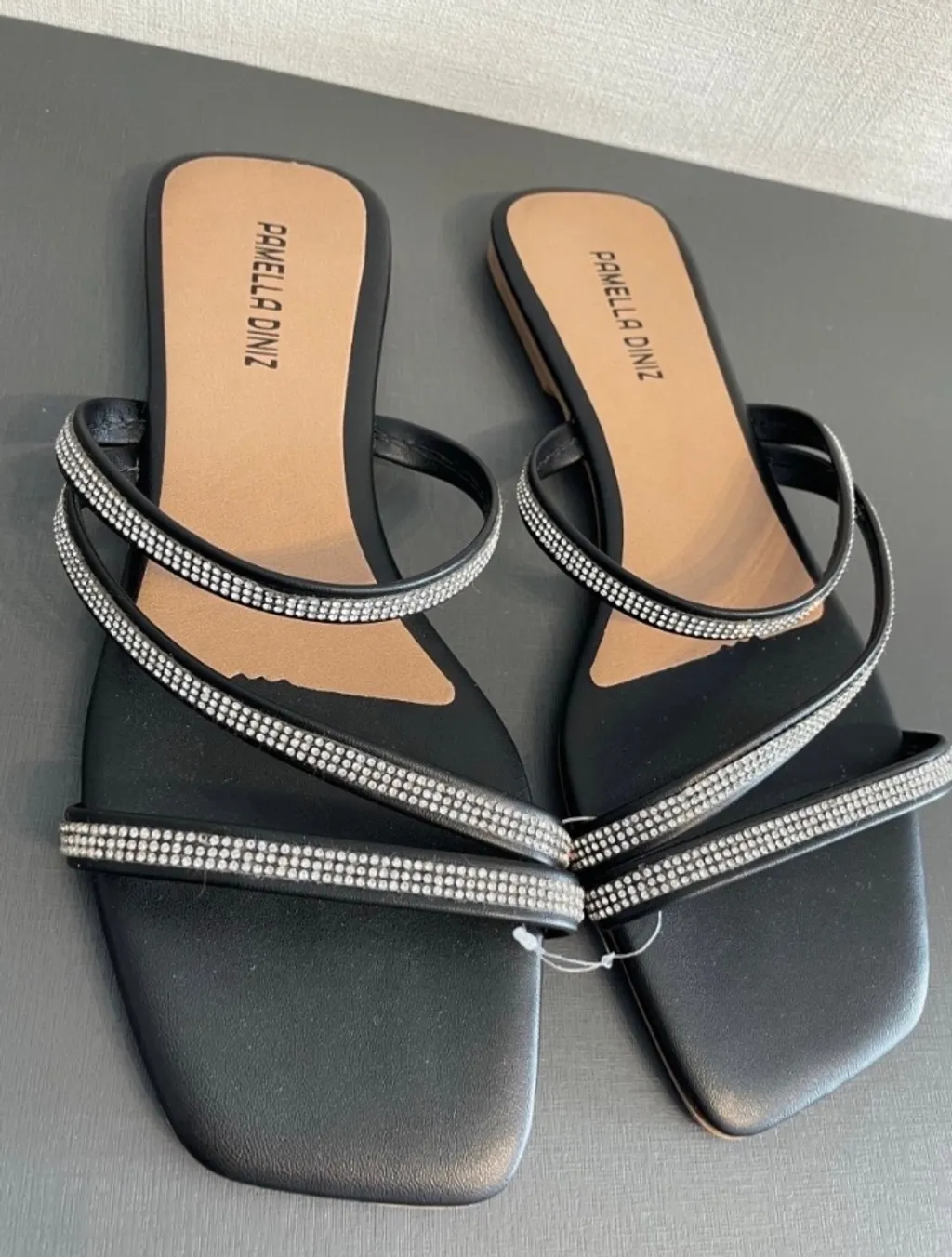 rasteirinha preta, tiras com strass e sola borracha, nova. medidas: palmilha 25